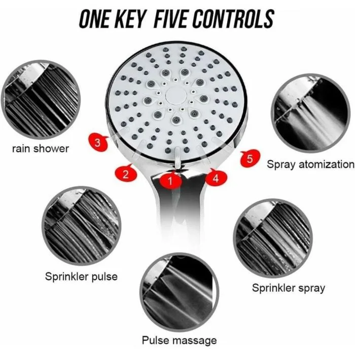 🚿 خمسة أوضاع مختلفة لتدفق الماء (قوي – متوسط – ناعم…)